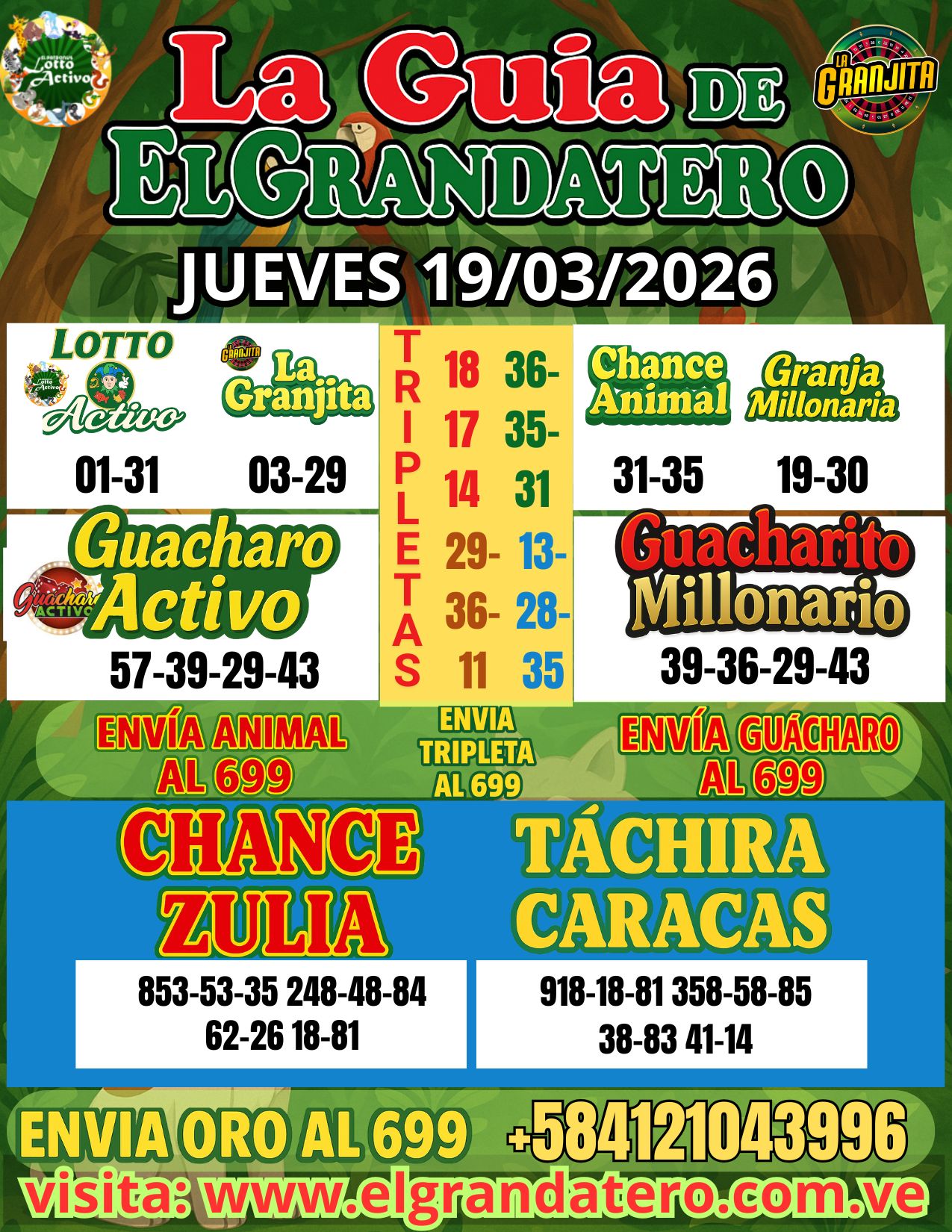 Triples gratis, terminales fuertes y datos recomendados para Chance, Zulia, Táchira y Caracas. Información publicada por elgrandatero.
